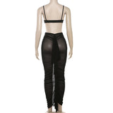 This is a 3 piece set. It includes a long ankle length skirt with a bikini top and bikini. It has strength fits true to size. Made from polyester and spandex.