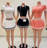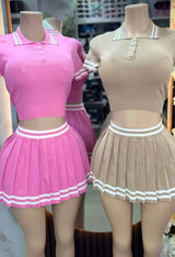 This tennis skirt set is a summer MUST HAVE! If you don’t have a trendy set like this you are not saying nothing! It’s so cute, prefect for any event, bbq, party or family gathering. It boasts a pleated mini skirt and a matching short sleeved, collar shirt. Has great stretch and made form polyester and spandex.