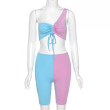 Fly multicoloured colour block two piece set! Good stretch, true to size fit. Crop top with biker shorts made from spandex and polyester. Breathable material!